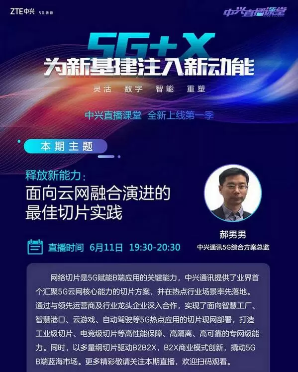 中兴直播课堂“5G+X新基建注入新动能”系列课程震撼开启