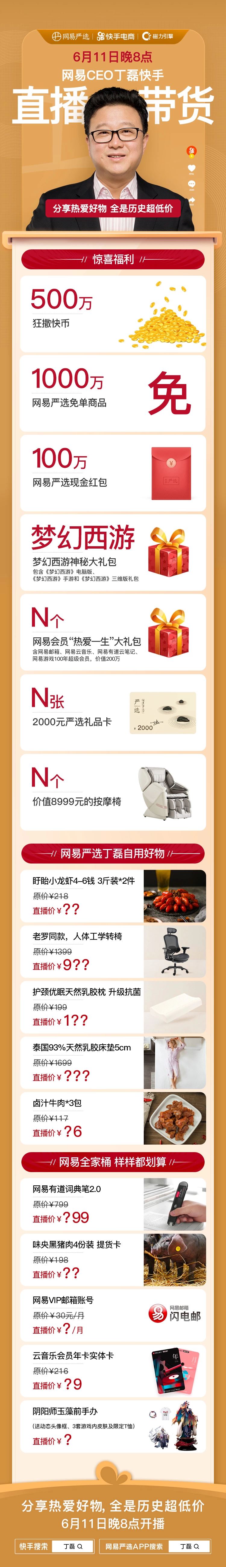 网易粉丝的盛宴 丁磊快手直播商品清单出炉