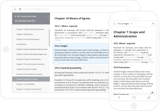 “在线法规库”是将建筑规范相关的书籍、PDF和在线资源整合到一个数据库中,用户可以通过电脑、手机等随时查看和搜索法规。UpCodes会实时更新跟踪这些法规的更新,并支持用户团队共同标记和研究。截止到2017年,UpCodes已经处理了超过11万次搜索。