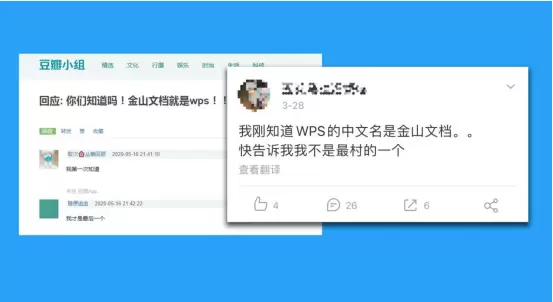 除了提到金山文档好用以外,一些用户认为“金山文档就是WPS”。有这样的想法不奇怪,因为金山文档和WPS都为金山办公旗下办公产品。作为国内办公软件老牌研发厂商,现在几乎每四个中国人就有一个是WPS的用户。而且金山文档名字中的金山,会让人直接联想到金山WPS,并不奇怪。