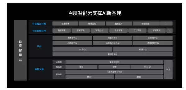 在不久前召开的“ABC SUMMIT 2020百度夏季云智峰会”上,百度宣布了“以云计算为基础,以人工智能为抓手,聚焦重要赛道”的全新战略及架构,同时发布AI中台、知识中台两大创新平台和新一代智能办公平台。其中AI中台可以帮助企业搭建自己的AI平台,让企业可以按照自己的需求快速、高效地实现AI解决方案。而知识中台则可以为企业提供高效便捷的知识生产、组织和应用能力,满足业务场景智能化的需求,解决大多数企业缺乏构建和运用知识能力的痛点。而在新战略指引下,百度智能云正在成为推动产业智能化发展、加速AI工业化大生产的关键力量。