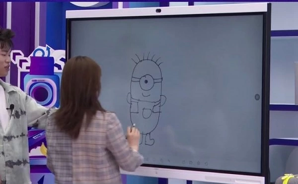 6月10日晚上,奇葩大王做客京东直播间,在直播现场与两位主持人用华为企业智慧屏当场玩起了“你画我猜”的小互动。主持人在这块超大智慧白板上流畅的画出小黄人形象,,低时延的书写手感、4K高清的屏幕画质让大王秒解谜题,直播间观众频刷弹幕表示华为企业智慧屏也太流畅了。