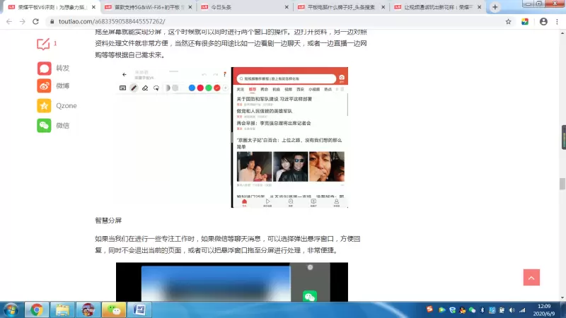 平行视界和智慧分屏功能则更像把平板电脑分割成两台设备。平行视界是分屏显示同一个应用程序,智慧分屏则是分屏显示不同的应用程序,两个功能都让一台平板拥有了两台的创造力。对很多需要核对数据或者抄录的工作来说可以是相当方便,还可以在一台平板上实现“一心二用”。