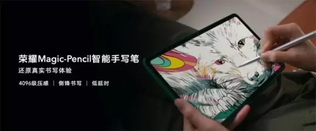 要说到提高工作效率,自然少不了手写笔和键盘,这两者可谓是让平板电脑功能不输笔记本电脑的神器。荣耀平板V6搭载了一根4096级压感的荣耀Magic-Pencil。荣耀Magic-Pencil的超低延时让线条与笔尖同步显示,亦可支持侧锋书写。为了在最大程度保留创作灵感。其搭载的智能蓝牙键盘内置NFC,采用了无感蓝牙连接配对,能一碰启动多屏协同,并支持USB Type-C充电。这两款外设的加入,为荣耀平板V6带来旗舰级的操作体验。