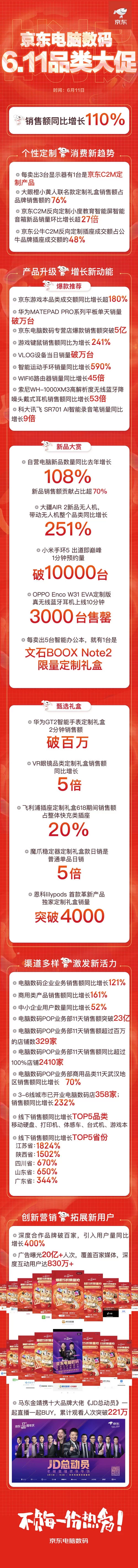 随着6月11日京东电脑数码品类日的到来,电脑数码作为京东618这场消费狂欢最为焦灼的战场,凭借主场带货优势助推各大品牌实现年中集中爆发,全线产品增幅亮眼。6月11日京东电脑数码品类日当天,电脑数码整体销售额同比增长110%,以傲人战绩为接下来18日高潮日的品牌大战擂响了战鼓。从战报中不难看出,个性化消费浪潮的到来,促使更多品牌选择与京东开启C2M反向定制模式合作,作为品牌增长新风口;而人气爆款产品、品牌新品以及甄选礼盒,则成为消费者在为自己进行产品升级时的首选;另外,线上线下融合趋势愈演愈烈,全渠道发力的战略布局成功带动消费市场升温,刺激消费市场焕发出全新活力;而在京东创新营销方式试水之下,拓展新用户、成功实现获客增收效果显著。