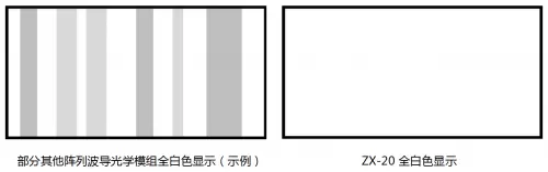 ZX-20光学模组通过创新的镀膜技术,主动抑制高入射角光线的传播,在去除杂散光的同时,极大改善了画面不同区域亮度的均匀性,从而从根本上提升了画面的品质,解决了传统阵列光波导技术的一个核心痛点。