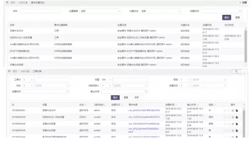 智能联动处置:包括工单联动,处置策略联动,安全事件的自动策略处置、手动处置。联动对象有防火墙、IPS、WAF、自动化运维。