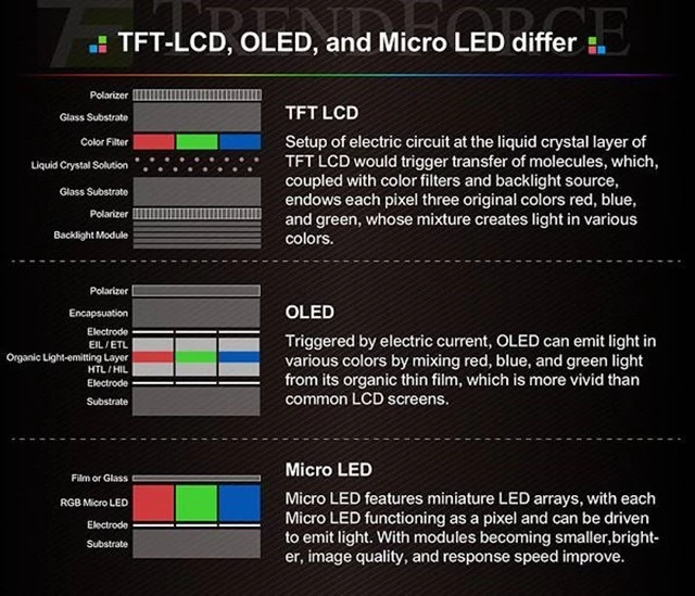 Micro LED技术在近段时间的热度似乎已经超过了OLED,但是目前还没有哪家公司具备大规模量产Micro LED屏幕的能力,OLED仍然是目前最为成熟的自发光技术。目前苹果iPhone X与Apple Watch使用的均为OLED屏幕,但很明显,苹果将OLED只是作为技术上的过渡。