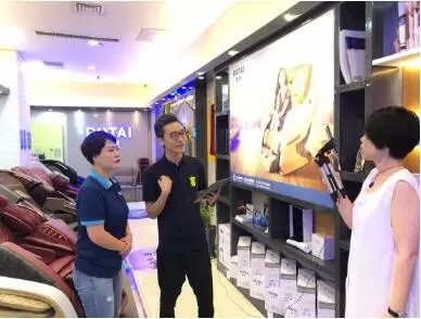 6月11日,正在上海青浦万达茂逛吃的于女士一家亲眼目睹了荣泰店面的直播过程后,本着“买家秀”的精神亲自体验了每一款产品后,非常兴奋地说:“确实是跟直播里说的一样,按摩的很专业,让人舒服放松,而且每一款产品都有不同使用场景,想要all in!”