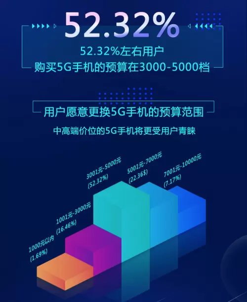 调查还发现,52.32%的消费者购买5G手机的预算在3000元-5000元之间,有22.36%的用户预算在5000元-7000元,调查显示,中高档价格的5G手机更受用户青睐。