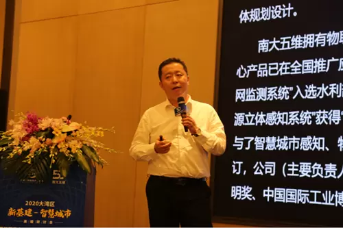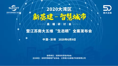 2020年6月9日下午,由深圳市物联网产业协会与江苏南大五维电子科技有限公司联合主办的“2020 大湾区‘新基建-智慧城市’高端研讨会暨南大五维‘生态眼’全案发布会”在深圳湾万怡酒店召开。深圳市工业和信息化局新兴产业处沈祎舜科长,王兴军、宋宏伟等10 名大湾区物联网智库专家,及39名“智慧城市”领域尤其是智慧环保、智慧城市总集、运营服务商、智能制造、智能安防、车联网、智能交通等领军企业负责人受邀出席了大会。