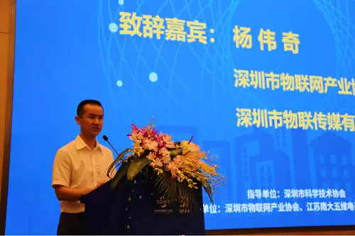 研讨会伊始,深圳市物联网产业协会执行会长杨伟奇及江苏南大五维电子科技有限公司董事长潘巍松分别致辞。