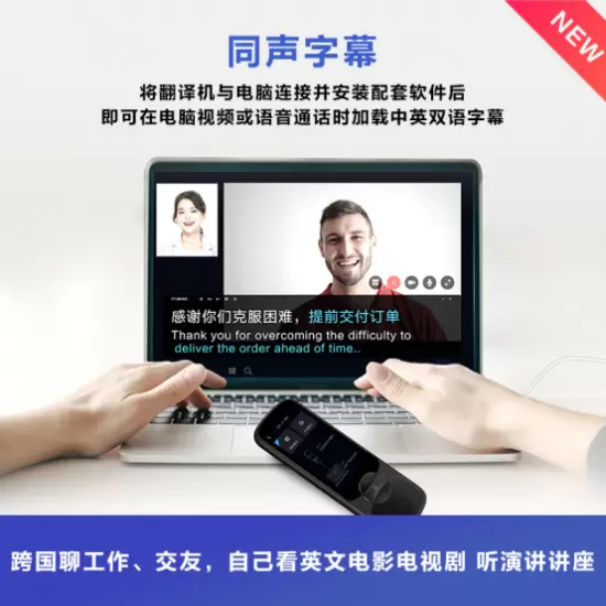 你只需将翻译机与电脑连接,并安装PC端配套软件即可使用。不管是远程会议交流又或者是直播讲解,都可以在屏幕上实时展现出中英字幕,帮助到企业做好线上推介、现场直播、远程洽谈等工作。