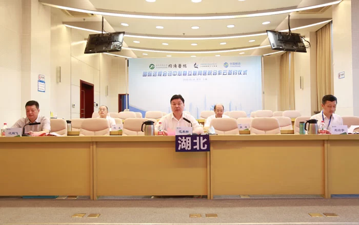 6月18日,华中科技大学同济医学院附属同济医院、联仁健康医疗大数据科技股份有限公司与中国移动湖北公司在武汉、上海两地,采用三方远程连线的方式共同举行“国际远程会诊中心暨互联网医院合作”云签约仪式。三方将充分发挥各自优势,合理配置资源,扩大我国优质医疗资源的服务半径,打造出辐射全国的区域互联网医疗中心。