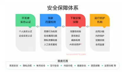华为应用市场是全球首家实施"开发者实名认证"的应用市场,所有入驻的开发者需要经过严格的实名认证审核,以此过滤掉"来源不明"的第三方应用,从源头上降低应用安全的隐患。作为应用分发平台,华为应用市场采取四重检测机制,综合检测应用在恶意行为、安全漏洞、隐私泄漏等方面的问题,切实保障用户的利益。同时,华为应用市场要求开发者遵守用户隐私保护和安全审核条款,若发现某款应用违反规则,华为应用市场会立刻与开发者进行沟通,第一时间对违反规则的内容予以纠正,否则该应用将从华为应用市场下架。