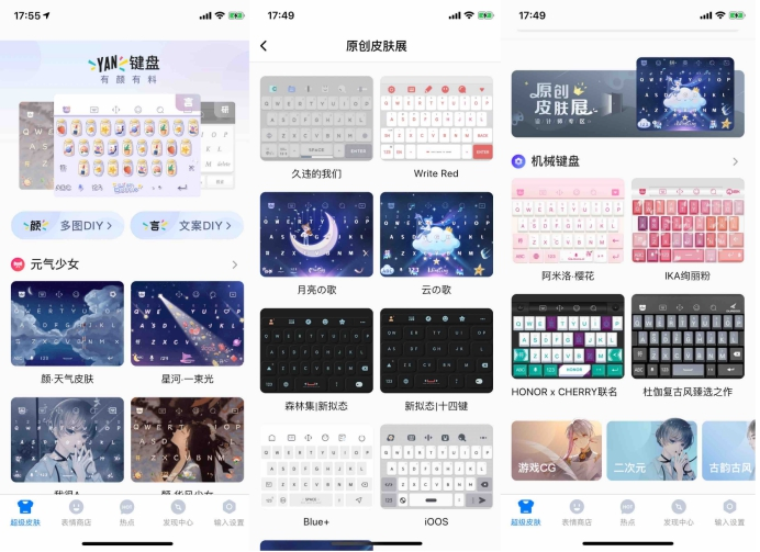 还有如24小时陪伴的情侣皮肤,提醒每日温度和穿搭的天气皮肤,动漫IP皮肤,插画皮肤以及按键、字体、动效、音效均可自行设定的DIY功能等等,收获了一众用户好评。