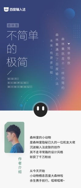 据悉,百度输入法此次引入了森林集、少年维特、Eddie、鲲鹏、HERE180等数十位顶尖设计师,来扩充皮肤的“新玩法”。其中,此前一经“官宣”便迅速引起强烈反响的的设计品牌“森林集”,曾创作数百套极具特色的输入法皮肤。极简的设计风格、特别的键盘布局、清新自然的配色为用户带来了别致的输入体验,使其收获了上千万粉丝,实属输入法皮肤界的“标杆代表”;而设计师“少年维特”,则倾向于用梦幻的视角表达对世界的爱,目前皮肤作品累计下载量超过2亿,堪称“颜值”与“实力”兼备的顶级作者。