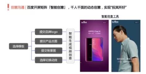 除了投放环节,百度开屏矩阵还在创作环节提供了“智能创意”功能,仅需要品牌客户提供基础物料,系统便能实现千人千面式的动态创意,确保针对不同受众达成最优的传播效果。报告数据显示,由智能创意完成的动态视频广告,其点击率至少上升三成。