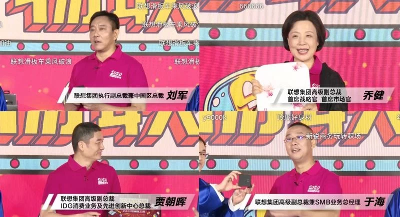 6月18日零点起,联想开启618巅峰24小时大直播,为618大促献上最劲爆惊喜。凌晨,联想集团执行副总裁兼中国区总裁刘军骑着滑板车进行了开场首秀,接着联想集团高级副总裁、首席战略官、首席市场官乔健,联想集团高级副总裁、IDG消费业务及先进创新中心总裁贾朝晖,联想集团高级副总裁兼SMB业务总经理于海等大咖“主播”轮番上阵,花式带货的同时放送惊喜秒杀价,让大家切实感受到了“真香”的气息。