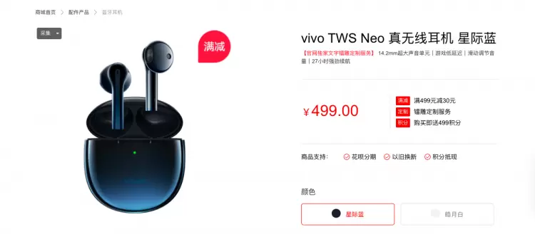目前618大促已经接近尾声,vivo TWS Neo真无线耳机在vivo官方商城、体验门店及各电商渠道同步热销中,售价499元,部分平台可享立减30元的优惠,感兴趣的用户可以下单体验。另外,在上述渠道与部分vivo手机同时下单购买,可享立减50元购机套餐优惠,可享更多优惠。
