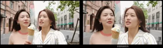 (左边为没有视频超级防抖的前置,右边为有超级防抖的前置)