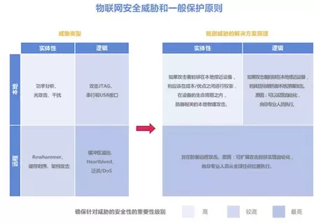 因此,设备所感知的数据以及根据数据做出的决策都必须可靠。在设备的整个使用期限内都必须确保这一点。设备的使用期限是不可预测的,一些物联网设备可使用10年以上。黑客技术在不断改进;每天都会出现新的攻击。这些攻击如今覆盖了“本地”与“远程”以及“逻辑”与“物理”攻击矩阵的四个象限。