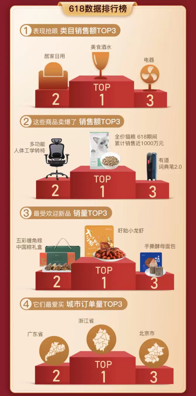 纵观今年618,家居品类、食品品类等网易严选的“传统强项”依然表现强劲,火腿猪肉罐头、秘制无骨凤爪、手撕酵母面包、酵素浓缩洗衣液等成为最受欢迎的商品。受季节性因素影响,新品榜单中小龙虾、网易智造温感落地扇、黑猪肉中国粽礼盒成为最受用户喜爱的新品。