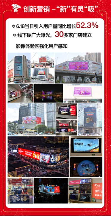 值得一提的是,京东影像618巅峰24小时中,也通过引入多元流量和创新的营销方式,带动线下门店实现获客增收。数据显示,在6月18日当日,引入用户量便获得52.3%的同比增长。同时,为了增大曝光量,在楼宇大屏、地铁站等户外线下均实现了长时间的露出,引发用户关注,并在30多家门店建立影像体验区,用于用户沉浸式的体验,强化用户的感知。