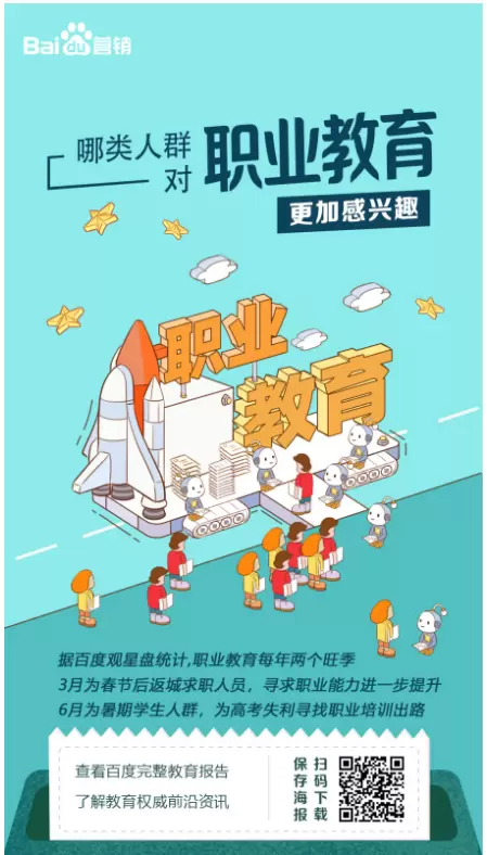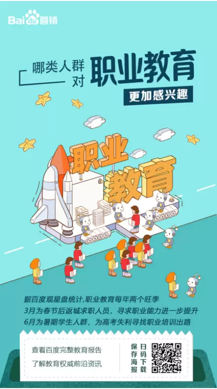 在大环境利好的前提下,未来十年,教育行业将迎来新一轮黄金发展期,而教育企业如何应对瞬息万变的行业市场,制定最合理的营销策略?对教育行业品牌主来说,考验或许才刚刚开始。而百度基于自身大数据能力及对行业用户的充分洞察,通过对历史用户搜索/浏览数据进行海量分析,为教育企业提供了投放策略的指导依据,从行业变化趋势、需求地域特征、目标人群画像,到效果类产品投放特点,帮助教育行业广告主精准辨识用户,做到更精细化的智能投放,高效提升转化能力。