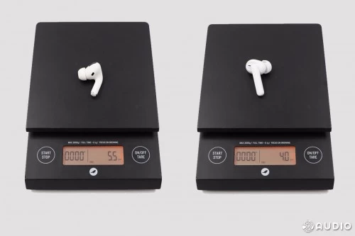 重量方面,我爱音频网对这款耳机进行了实测并与AirPods Pro进行了对比。通过OPPO Enco W51与AirPods Pro的重量对比图,我们可以发现OPPO Enco W51相较AirPods Pro轻了1.5g,在佩戴体验上也会好上很多。
