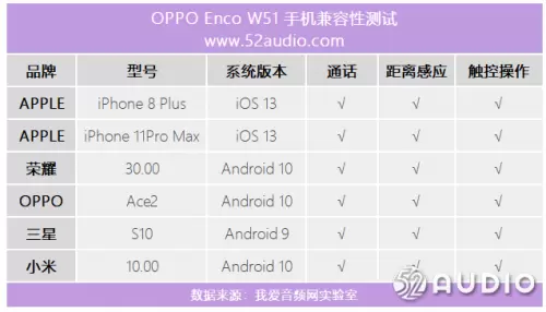 在综合评测部分,我爱音频网对OPPO Enco W51进行了全面的测试,涵盖“连接性能、语音助手的使用、音乐播放效果体验、耳机与手机的延迟、耳机有效连接、手机配对兼容性以及充电等测试”。结果不出所料,OPPO Enco W51每一项功能都十分出色。在音乐播放效果体验上尤为突出,我爱音频网甚至认为“OPPO Enco W51音乐表现超过了AirPods Pro,低音也更加澎湃有力”。