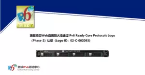 近日,瑞数信息技术(上海)有限公司旗下的瑞数应用保护系统和瑞数动态Web应用防火墙两个产品在下一代互联网国家工程中心-全球IPv6测试中心(www.IPv6Ready.org.cn)正式通过IPv6 Ready核心协议Phase-2测试,并荣获由国际组织IPv6 Forum颁发的IPv6 Ready Logo Phase-2认证证书。