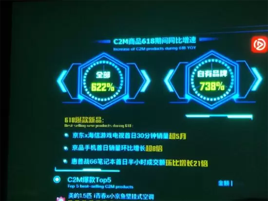 数据显示,今年京东618期间,C2M产品成为爆款的绝对主力军。6月1日至4日,C2M产品的销量同比增长2.6倍,特别是京品手机首日销量环比5月日均增长超8倍。