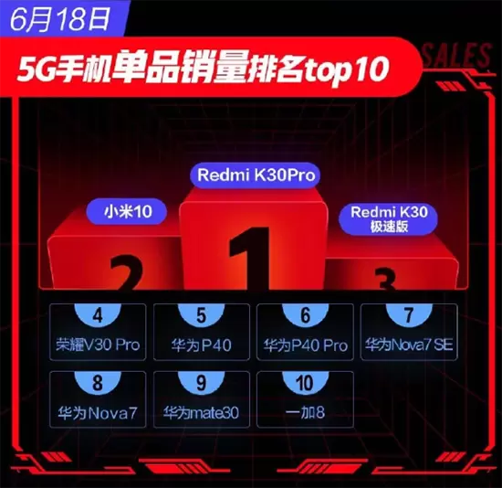 上线当天,Redmi K30 5G极速版在京东开售两分钟销售额破千万,11分钟破万台,单日销量超过了2万台;在京东618期间,这款手机几乎每天都会出现在手机单品销量排名榜、5G手机销量排名榜、5G手机累计销量排名榜上。