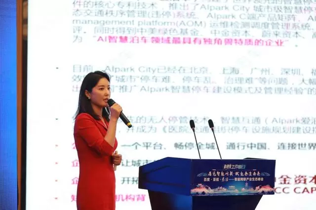 (爱泊车集团高级副总裁王凤菊现场推介)