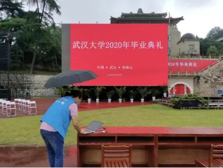 2020年6月20日,武汉大学在“九二一”操场举行了一场特殊的毕业典礼,660名毕业生代表来到现场接受拨穗正冠,未能到场的毕业生则通过观看5G直播的方式“云”聚珞珈,共同见证自己的毕业盛典。