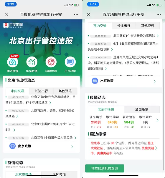 北京自发生新发地批发市场聚集性疫情以来,防控举措持续升级,公众防护意识显著提升。为便利公众获取最新疫情管控信息、外出时安全避行高风险疫情区,百度地图于端午前夕上线北京出行管控速报、导航避让疫情区域功能,核酸检测地图覆盖机构更新至128所,全面汇聚出行信息与服务,合理规划出行安全线路,为公众贴心送上实用出行指南,守护公众出行平安。