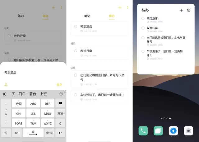 还在担心出门忘带某件物品吗?不妨试试 ColorOS 7.2 自带便签中的「待办」功能。我们可以将自己需要带的物品或者办的事记录在这里,同时还能将其设为桌面插件,这样完成一项勾一项,还有哪些事情未完成一目了然,这样就不用再担心自己忘带什么或者错过什么事情没做了。