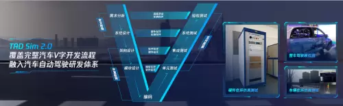 在2.0升级版本中,用户可根据自动驾驶测试的需求,结合路采的交通流数据,形成虚实一体的测试场景。通过完整的模型在环、软件在环、硬件在环、车辆在环的测试验证体系,TAD Sim 2.0覆盖了完整的汽车V字开发流程,并融入了自动驾驶研发体系。