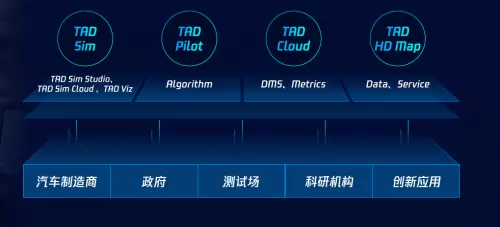 借助腾讯在AI、云计算领域的技术优势,在高精度地图领域的积累,腾讯已经形成了仿真测试、开发云和高精度地图三大基础平台和自动驾驶核心技术套件。面向汽车制造商、政府部门和测试机构等合作伙伴,提供TAD Sim、TAD Pilot、TAD Cloud和TAD HD Map等产品和方案,一方面构建完善高效的数据利用闭环体系,同时也可以模块化、灵活的方式接入,为自动驾驶研发和应用落地提供助力。
