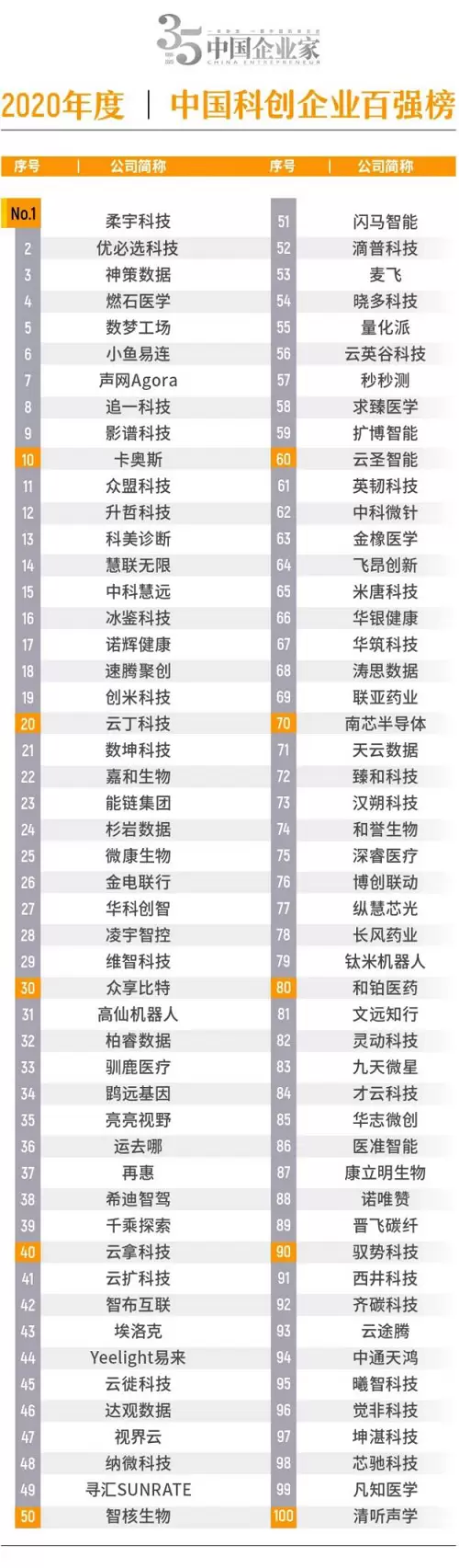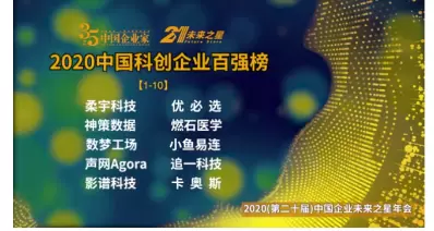 6月20日,2020中国企业未来之星年会暨中国企业家生态大会如期举行,大会公布了2020年度“中国科创企业百强榜”,柔宇科技位列榜首。