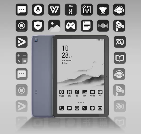 在系统UI上,海信平板Q5进行了优化定制,首先是适应RLCD屏幕提升了显示对比,然后在应用图标上进行了精准分类,点击类纯黑,展示类渐变,文字则统一采用纯黑显示,这样以来,应用分类一目了然。