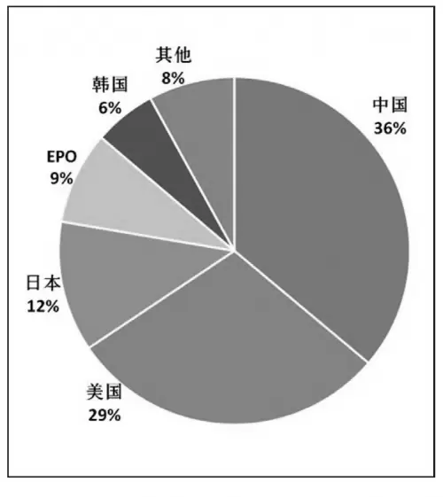 从当前专利申请量地域分布看,中、美、日三国专利申请量占到全球申请量四分之三以上,其中,中国以3687件申请占全球总申请量的36%,美国以2995件申请占全球总申请量的29%,日本以1238件申请占全球总申请量的12%(图2)。在中国进行专利布局的企业中,中国企业申请量为2035件占比76%,日本企业申请量为382件占比14%,美国企业申请量为108件占比4%。可见,经过近年发展,中国在投影显示用光源技术的研究和应用越来越多,日本企业在中国的专利布局数量要多于美国企业。