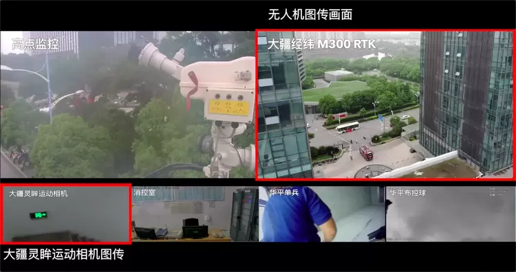 这套地空融合感知应急救援解决方案,不仅集成了地面部署的高清布控球和单兵设备回传的画面,还将大疆行业无人机在空中采集的全局画面以及固定在一线消防人员头盔上的大疆灵眸运动相机采集的现场画面,传输至部署在前线指挥部或后方指挥中心的华平应急指挥系统平台和图像综合管理平台上,协助指挥人员能够在第一时间获取救援现场全面、准确的态势信息。