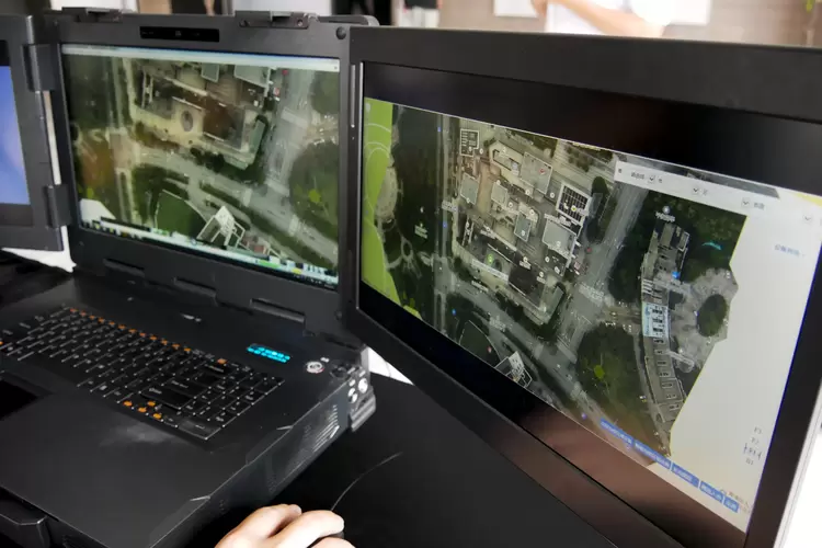 华平现场调度台显示无人机实时画面与高清地图