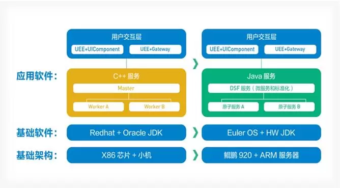在基础设施方面首次引入国产ARM芯片服务器,并新建自主可控第二计算平面,实现x86和ARM架构双计算平面部署。在基础软件方面采用“轻量化”和“低成本”路线,在接入层,应用层和数据访问层全面引入OpenAS、Redis、Kafka和DDS等各类开源和国产技术,实现系统架构从传统商用“Power芯片+ AIX+CICS+OracleJDK”到“国产ARM芯片+Euler +OpenAS+HWJDK”全面国产化替换。