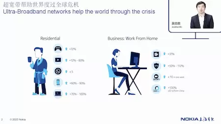 根据此前宽带运营商一直使用平稳增长的模型来预测,在未来3~4年里,宽带网络将增加30~40%。然而随着COVID-19的爆发,一夜之间也推动了宽带网络的增长,短期内就达到了这一预估水平。例如在疫情期间,网络游戏、vpn流媒体服务、社交媒体以及视频会议的应用,都出现了巨额的增长。