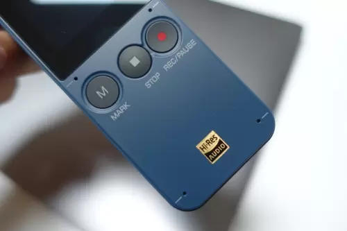 搜狗AI录音笔E1有黑色和蓝色两种颜色可供选择,个人比较偏向蓝色,色彩更鲜明一些。录音笔整体为长方形设计,正面配有一块1.54英寸的可触控屏,可以像操控智能手机一样,通过屏幕对录音笔进行操作,并且通过屏幕可以在第一时间看到转写内容。屏幕下方为三枚实体按键,分别为MARK、STOP和REC/PAUSE,操作非常方便,机身左边为开机键和音量调节按键,且音量+按键采用了凸起设计,用户可以实现快速盲操,右边配有3.5mm耳机接口,方便收听录音回放,保密性强。