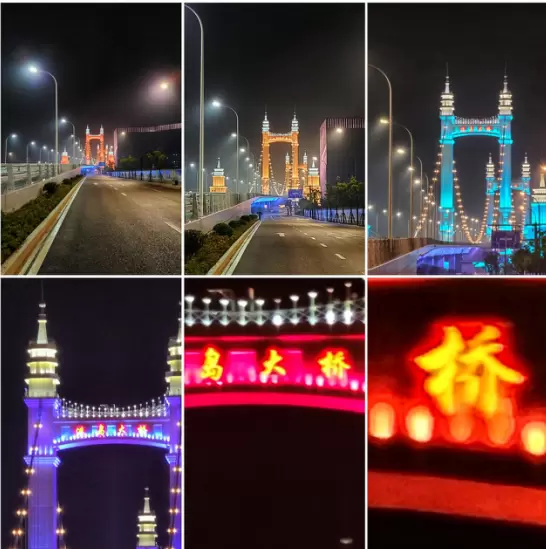 通过样张可以看到,三星GalaxyS20Ultra拍摄的夜景,天空有着较高的纯洁度,没有明显涂抹感,完美再现了远处的天空云层,更接近真实效果。同时,在灯火通明处没有出现过曝的情况,暗部细节也清晰可见,可以说是真正实现了“高光不过曝 暗部有细节”的摄影体验。
