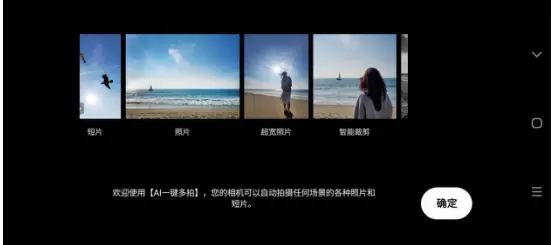 通过AI一键多拍功能,我们仅需点击快门按钮并四处平移,相机将自动拍摄最佳的场景照片和剪辑,手机可以在3到10秒的拍摄时间内拍摄多达14种不同类型的照片和视频。